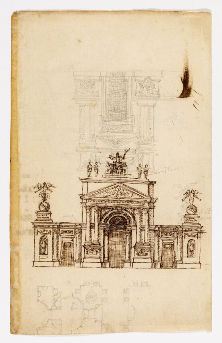 William Talman (1650–1719). Design for Whitehall Palace, London, 1709. Brown ink and pencil, 316 × 198 mm. DMC 1248.2r.