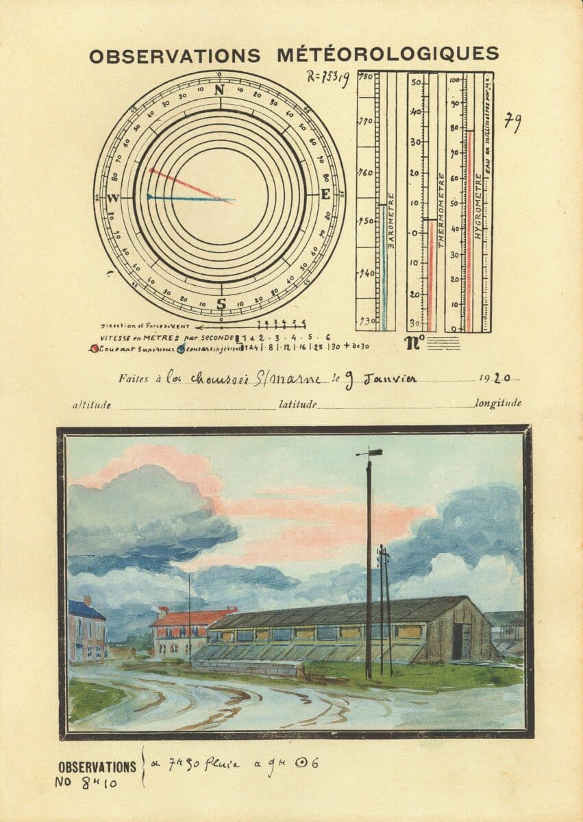 André des Gachons, Meteorological Observations, 9 January 1920. © André des Gachons – Collection Météo-France, A00147.