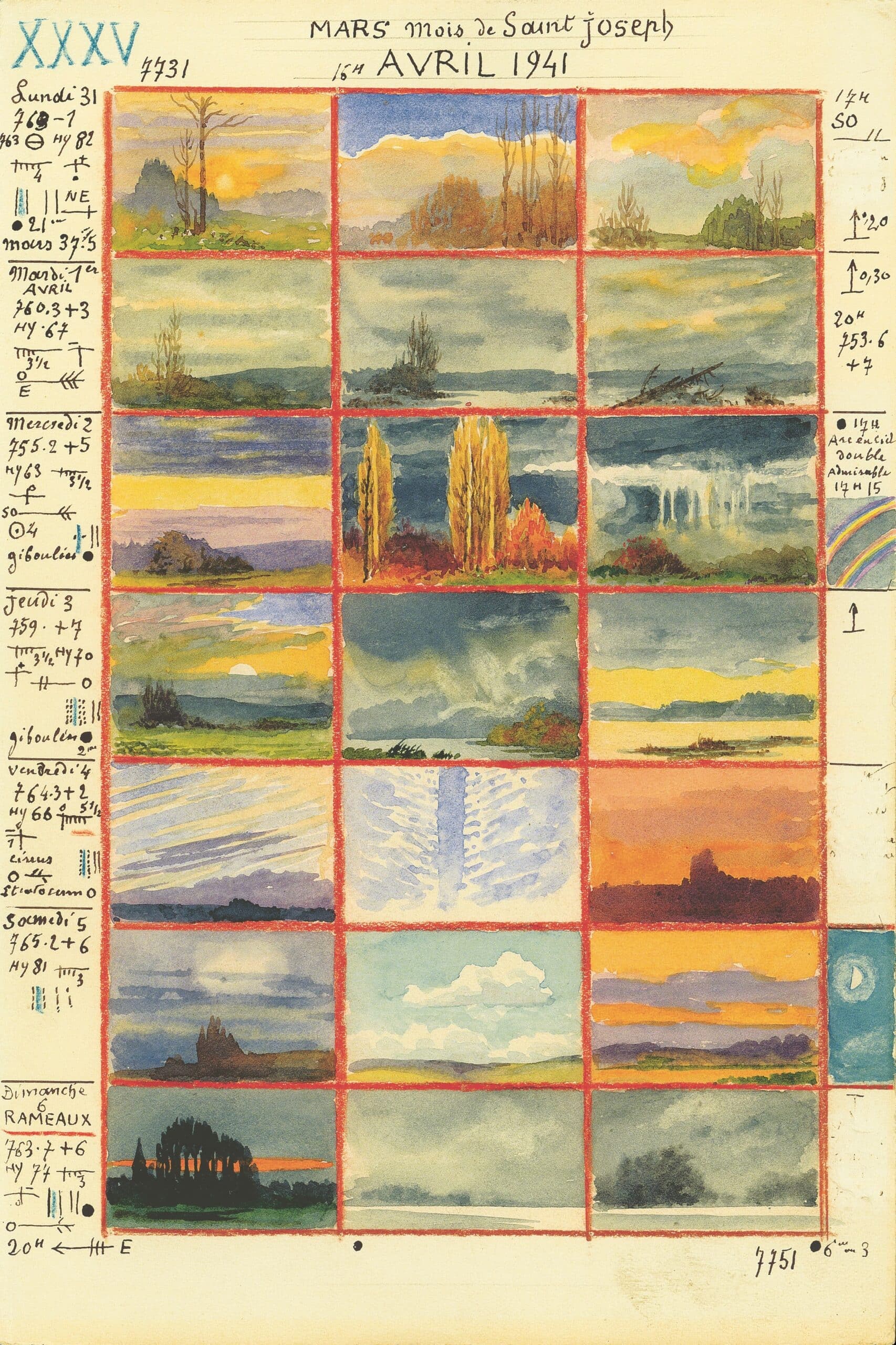 André des Gachons, Sketches of the sky 31 March–6 April 1941, dated 16 April 1941. © André des Gachons – Collection Météo-France, A00147.