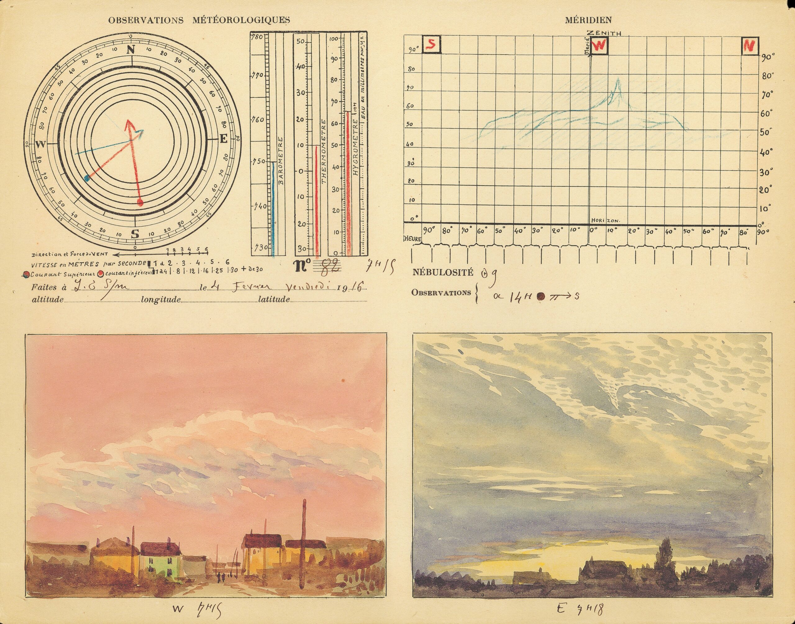 André des Gachons, Meteorological Observations, 4 February 1916. © André des Gachons – Collection Météo-France, A00147.