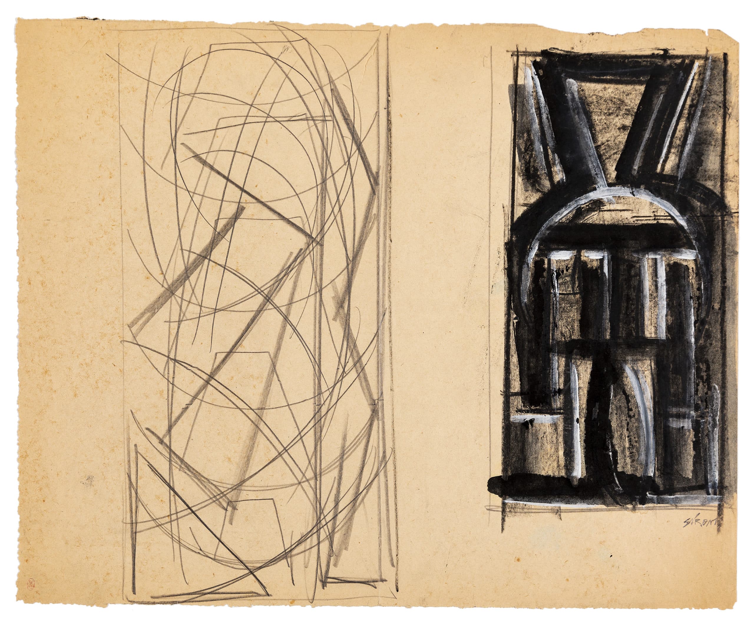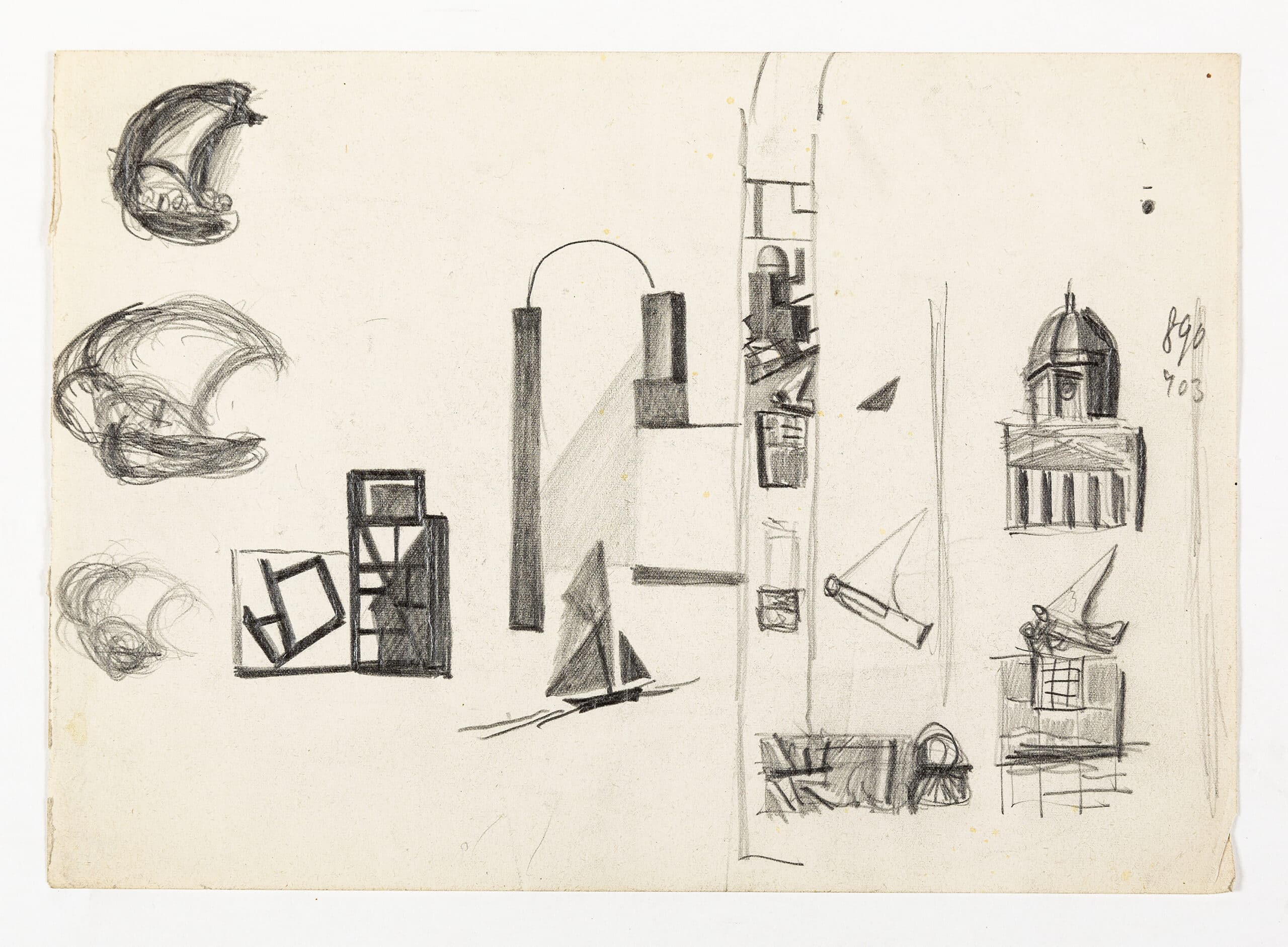 Drawing Matter holds 15 miscellaneous sketches by Mario Sironi. Sironi was an artist who, in the 1920s became a leading member of the Novecento group, famed for his heavy, monumental, and figurative style. Although no official style for fascist art was defined, Sironi’s work achieved success in the inter-war years, as a collaborator of the regime and its official newspaper Il Popolo d’Italia.