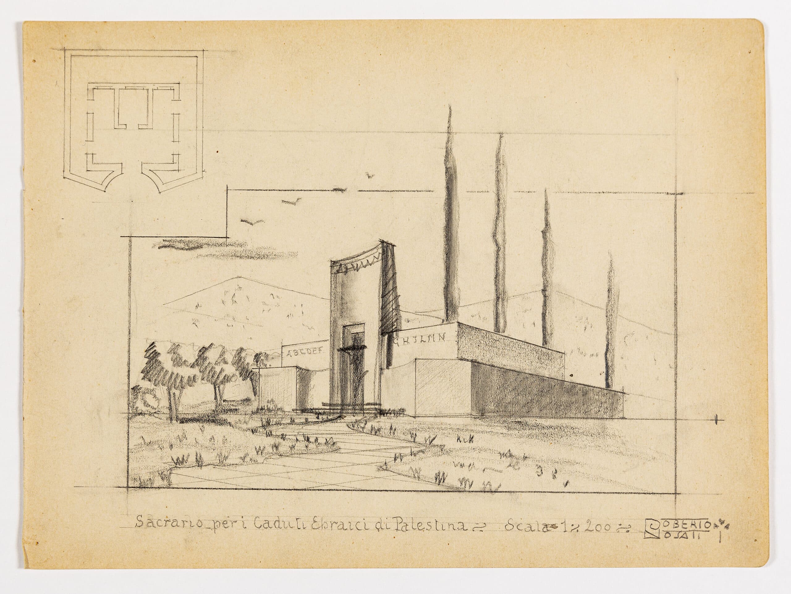 Two drawings by the unknown Italian architect Roberto Rosati, most likely for reburial of soldiers of the First World War; DMC 2686 is titled ‘Sacrario per i caduti Ebraici di Palestina’ (‘Shrine to the fallen Jews of Palestine’) and DMC 2687 is for an unknown monument.