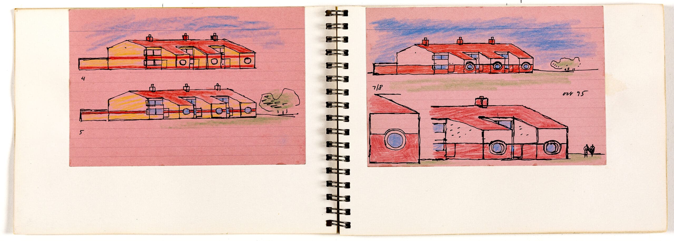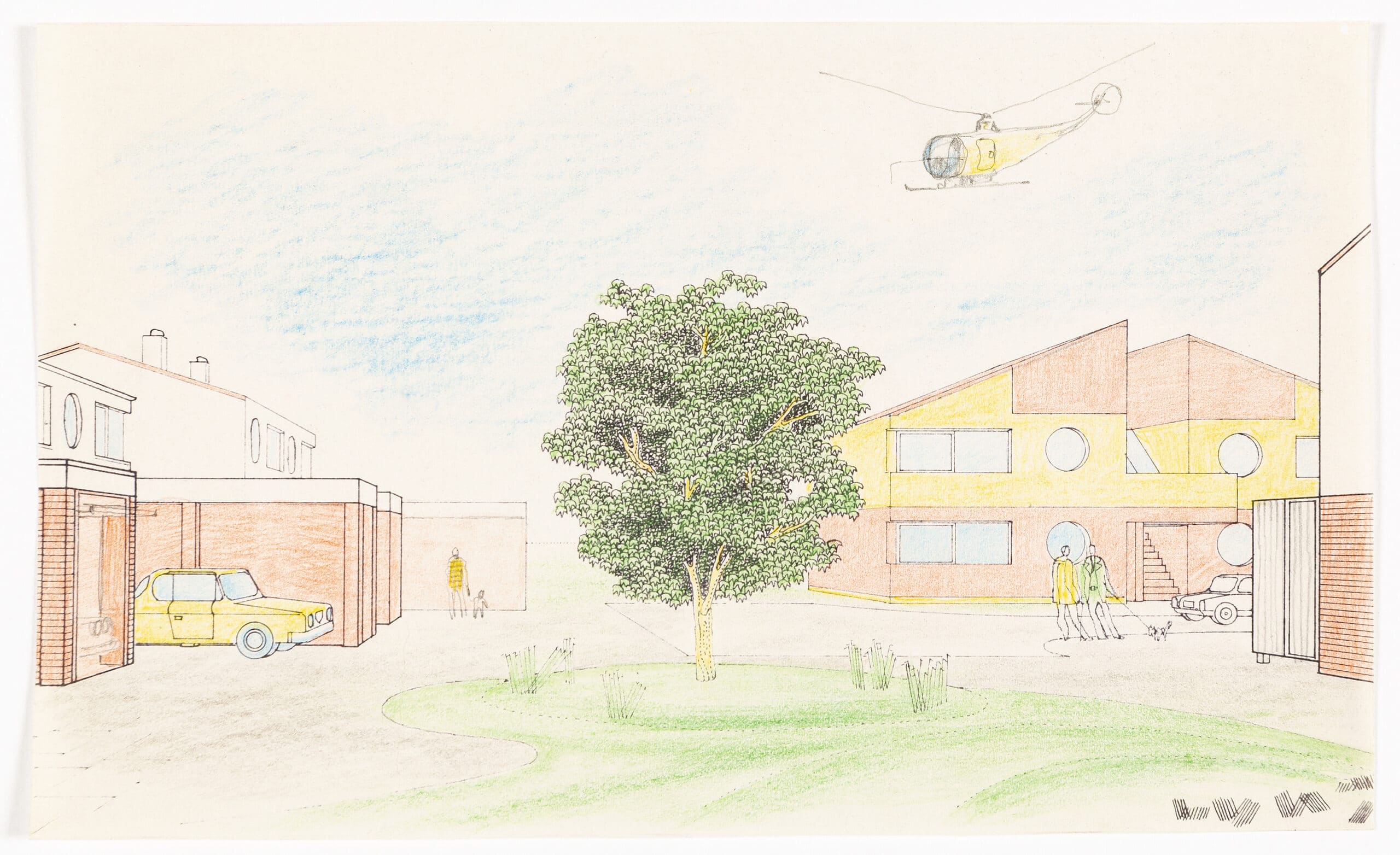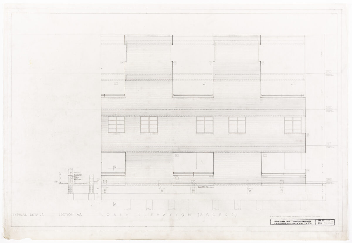 Following construction of Trafalgar Road, the Architectural Review included a snazzy drawing by Gowan of the façade illustrating a speculative kit-of-parts for personalisation that was to be sponsored by a residents’ cooperative – the idea being that each tenant could choose a series of clip-on elements. These included balcony covers, porches, screens, trellises and lean-to stairs, all in strong colours. This idea was never put into practice.