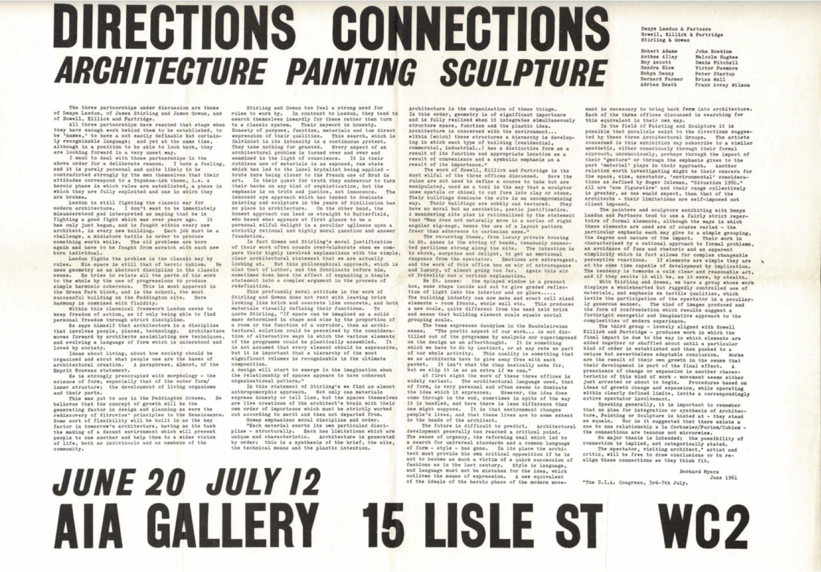 Directions Connections: Architecture Painting Sculpture, Bernard Myers for AIA Gallery 1961.