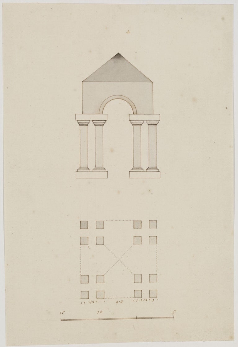 Once the plan for the exhibition had been agreed, I needed help on its layout (the display cases and layout of the two upstairs galleries at the Soane Museum are not straightforward), so approached the architect, Roz Barr, who has had a great deal of experience of exhibition design, to see if she would help. She suggested that we should go and look through the drawings at the V&A which form the main substance of the exhibition and a selection of which are illustrated below.