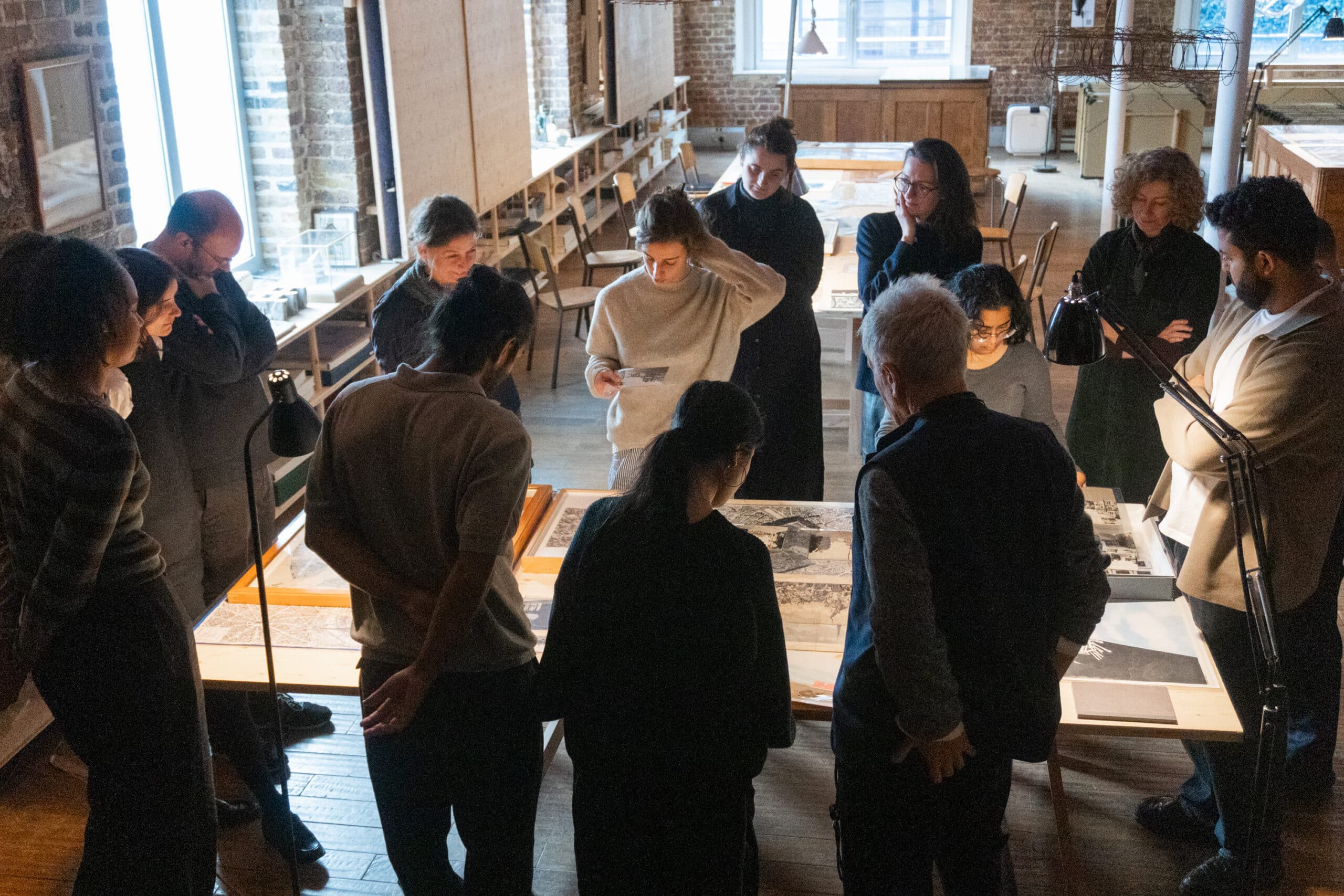 Not only did Drawing Matter give the students access to its archives, but orchestrated a generous mise-en-scène of its holdings, which culminated in the final presentation, where readings and sheets over sheets of drawings populated the tables, inciting the conversation between students, the staff of Drawing Matter and invited guests—Shumi Bose, Ingrid Schroeder and Ellis Woodman.