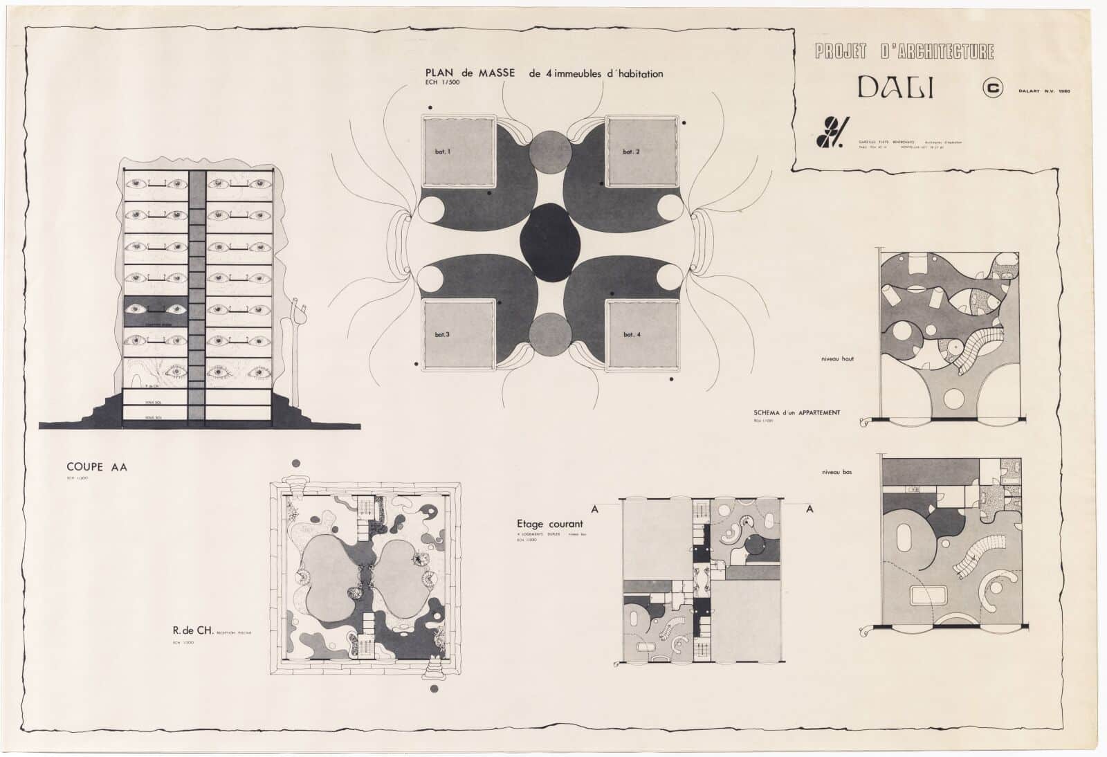 Unknown French, Dali Architecture Project, France, 1980. Print, 700 × 1020 mm. DMC 3983.