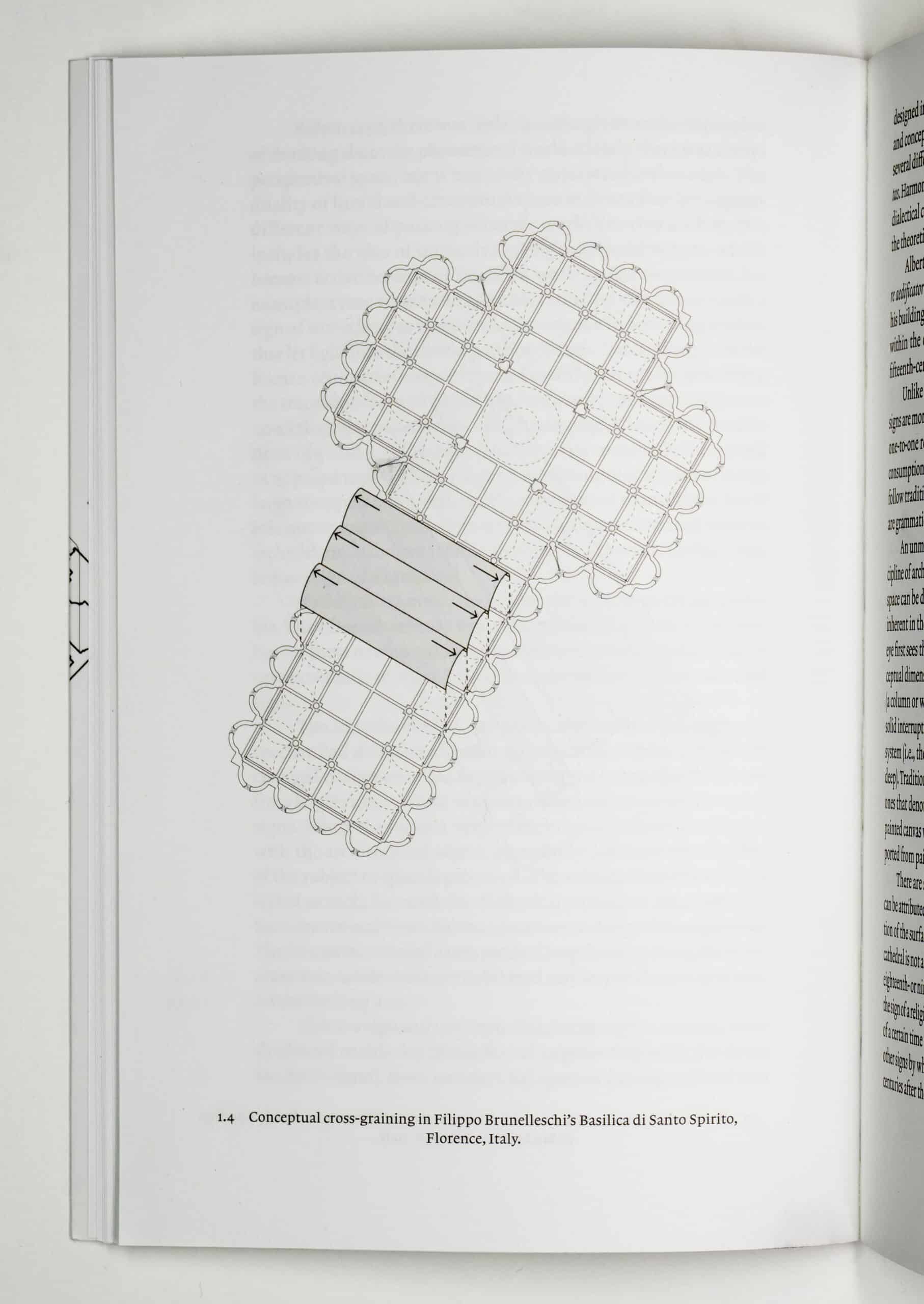 From his reading of Alberti, Eisenman takes architecture to be made up of two components. The first is what he calls ‘heterogenous space.’ In the eponymous opening essay of Rewriting Alberti (which also features essays from Mario Carpo, Daniel Sherer, and Pier Vittorio Aureli), Eisenman identifies the birth of heterogenous space with the Florentine sculptor and architect Filippo Brunelleschi. Brunelleschi was a generation older than Alberti; he had introduced monocular perspective into architecture as a method for representing actual or ‘real space’ through a geometric translation of the experience of a ‘seeing subject.’[3]