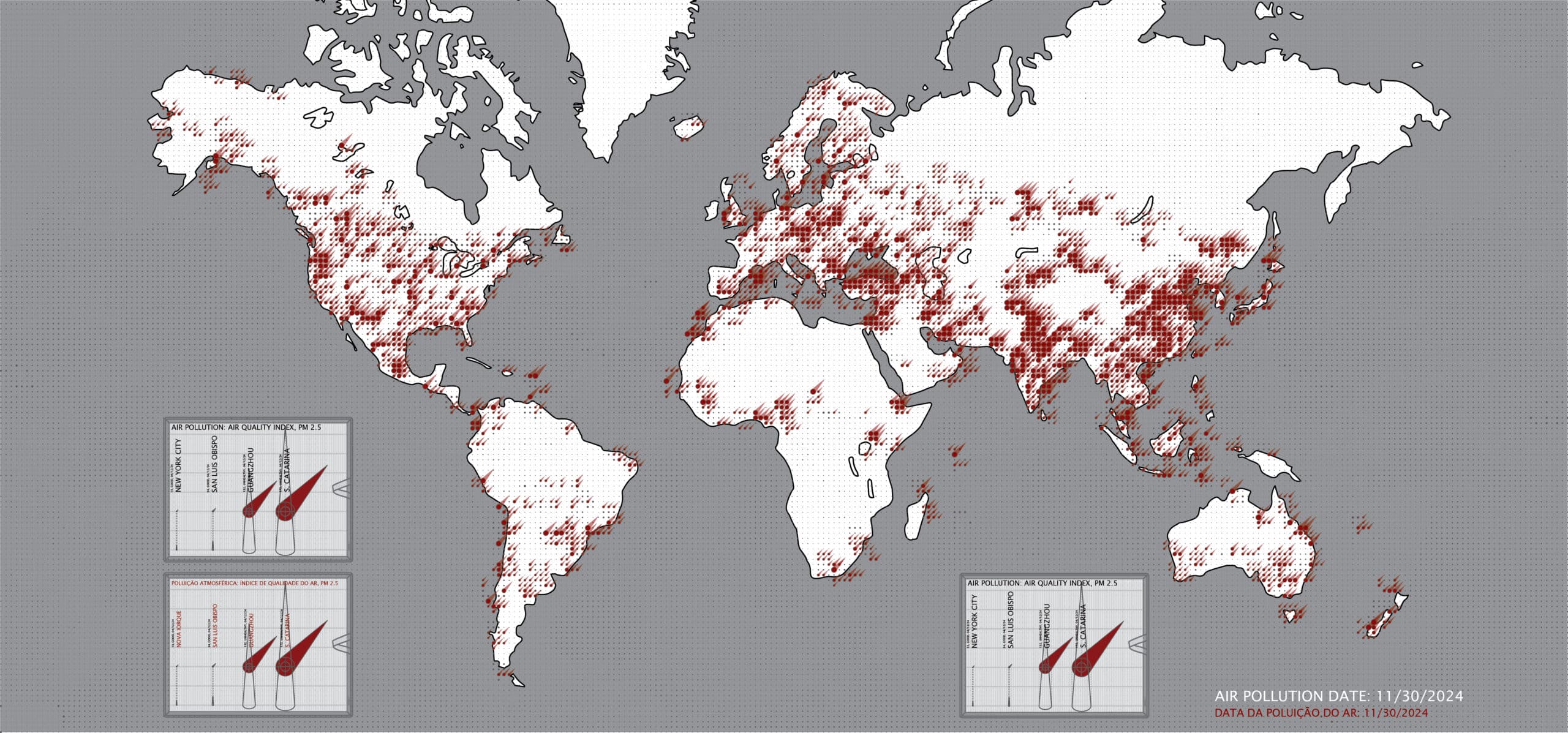 In The Weight of Clean Air, a project that interrogates the technologies of air filtration and their uneven global accessibility, the drawing process began with data mapping. Using a Grasshopper script that proportionally translates pollution levels into visual cones of corresponding height, we created a series of infographics that visualises a global survey of air quality.