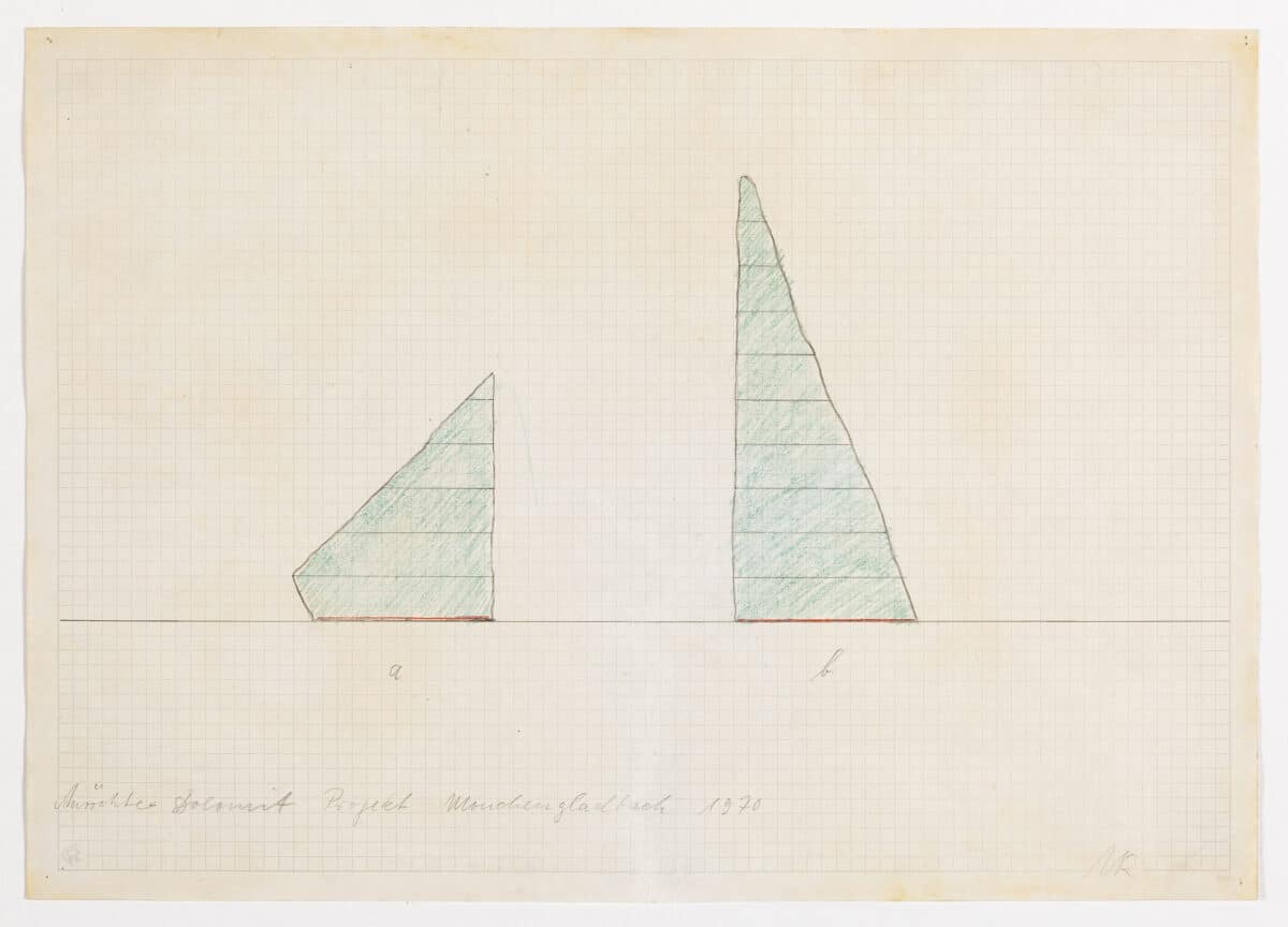 Ulrich Rückriem, Anröchter Dolomit Projekt, 1970. Pencil and coloured crayon on squared paper, 29.7 × 42 cm. DMC 2050.
