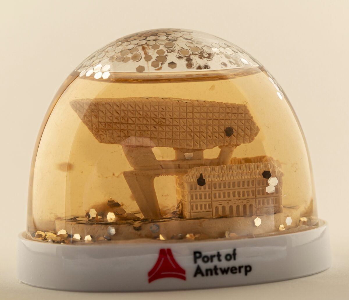 Corporate merchandise for two of Zaha Hadid’s later works. Glass paperweight of The Opus, housing the ME Dubai hotel, designed for developer Omniyat Properties. And a snow globe of the Port House in Antwerp, a renovation of the 1929 derelict fire station on the city’s waterfront. Both objects were acquired through Jeremy Peacock.